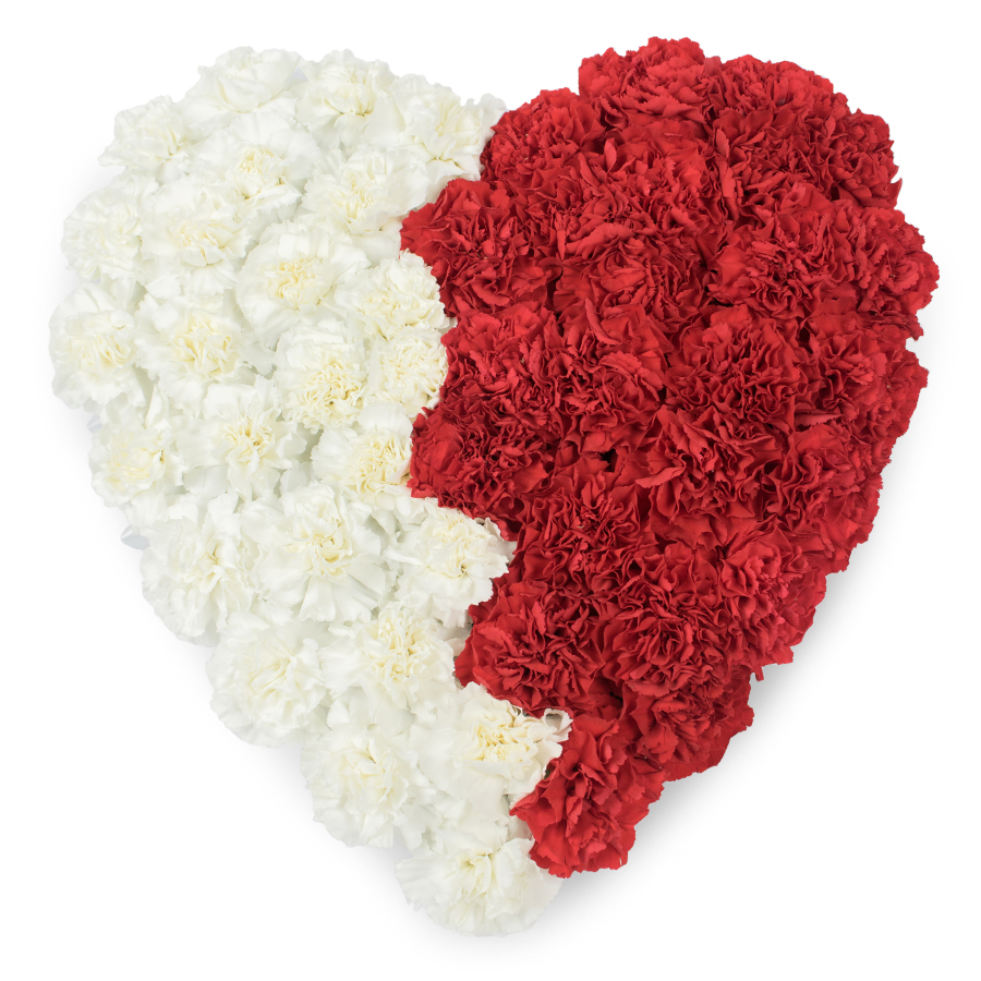 Celebrate enduring emotions with our Timeless Mixed Carnations Heart Bouquet. This classic arrangement features a stunning combination of white and red carnations, meticulously arranged into a heart shape to symbolize eternal love and respect.